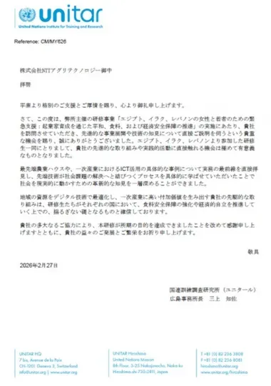 最先端農業用ハウスの設計・施工 完全閉鎖循環式陸上養殖 遠隔営農支援 遠隔営農支援 農総研との共創 事業内容 導入事例 企業情報 採用情報 取扱商品 AGRI TOPICS 国連訓練調査研究所(ユニタール)から感謝状を拝受しました 国連訓練調査研究所(ユニタール)から感謝状を拝受しました 成長分野カンファレンスに当社が登壇しました 成長分野カンファレンスに当社が登壇しました 国連訓練調査研究所(ユニタール)の研修生がワークショップの一環で当社施設を来訪しました 国連訓練調査研究所(ユニタール)の研修生がワークショップの一環で当社施設を来訪しました ドライフルーツの人気の秘密を開発者に聞きました。 ドライフルーツの人気の秘密を開発者に聞きました。 AGRI-TECHで、地域を次世代へ わたしたちは、食と農の分野において、新たな可能性と価値を見出し、持続可能で豊かな社会を創ります。 幅広い事業領域 育種、次世代施設園芸の設計・施工、産品の加工・販売まで地域のみなさま、ビジネスパートナーと共に農業界の発展に向けて取り組んでいます。 食と農のバリューチェーン 種子開発 育種 TOP 1次 生産 TOP 2次 加工・流通 TOP 3次 販売・消費 ※株式会社農業総合研究所がスーパーマーケット内に展開する「農家の直売所」 TOP 事業一覧はこちら ※株式会社農業総合研究所がスーパーマーケット内に展開する「農家の直売所」 それぞれの事業で食と農のバリューチェーンの最適化を図り、 食糧の安定供給をめざします。 食と農のさまざまな課題に挑戦しています スマート農業でお悩みはありませんか? 圃場の労務管理が大変・・・ 広大な圃場のリアルタイムな進捗管理が難しい スマート農業、どうやって始めればいい? NTTアグリテクノロジーのDigitalFarmerをご提案します。 くわしくみる 鮮度の保持でお悩みはありませんか? 農産物の鮮度保持が難しい… 飲食店でのフードロスを削減したい 農産物の出荷調整で収益安定させたい NTTアグリテクノロジーの電圧冷蔵ソリューションをご提案します。 くわしくみる お困りごとはございませんか? 他のお悩みはこちら 事業一覧 お知らせ・ニュースリリース 2026.3.18 お知らせ 国連訓練調査研究所(ユニタール)から感謝状を拝受しました 2026.3.18 お知らせ 成長分野カンファレンスに当社が登壇しました 2026.2.3 お知らせ 国連訓練調査研究所(ユニタール)の研修生がワークショップの一環で当社施設を来訪しました 2026.1.29 お知らせ 中田英寿氏と当社代表が対談いたしました さらに見る 採用情報 農業を起点とした街づくりの実現に向けて くわしくはこちら 採用情報 農業を起点とした街づくりの実現に向けて 詳細はこちら ページTOPへ